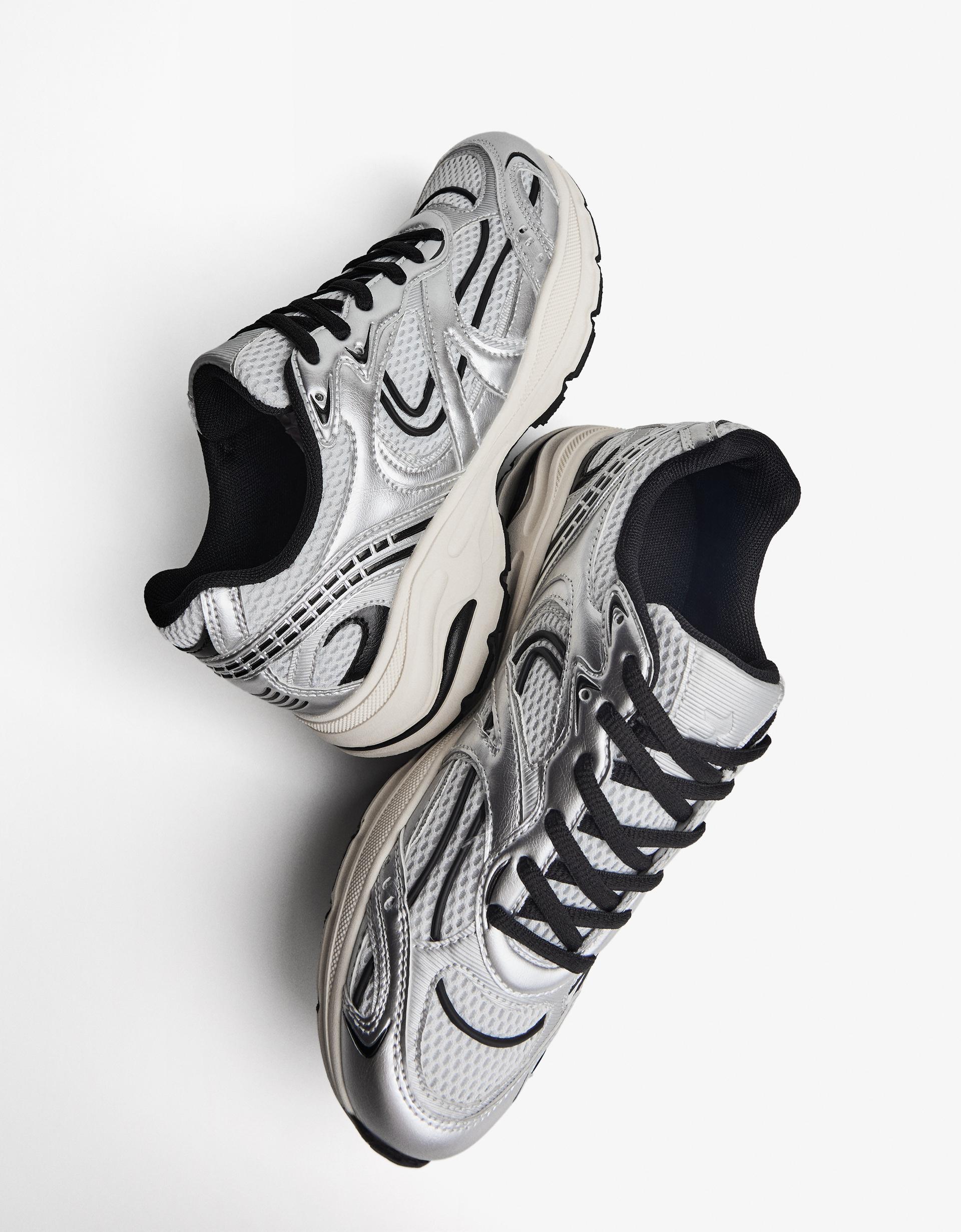 Giầy Bershka Multi-Piece Sneakers in Silver